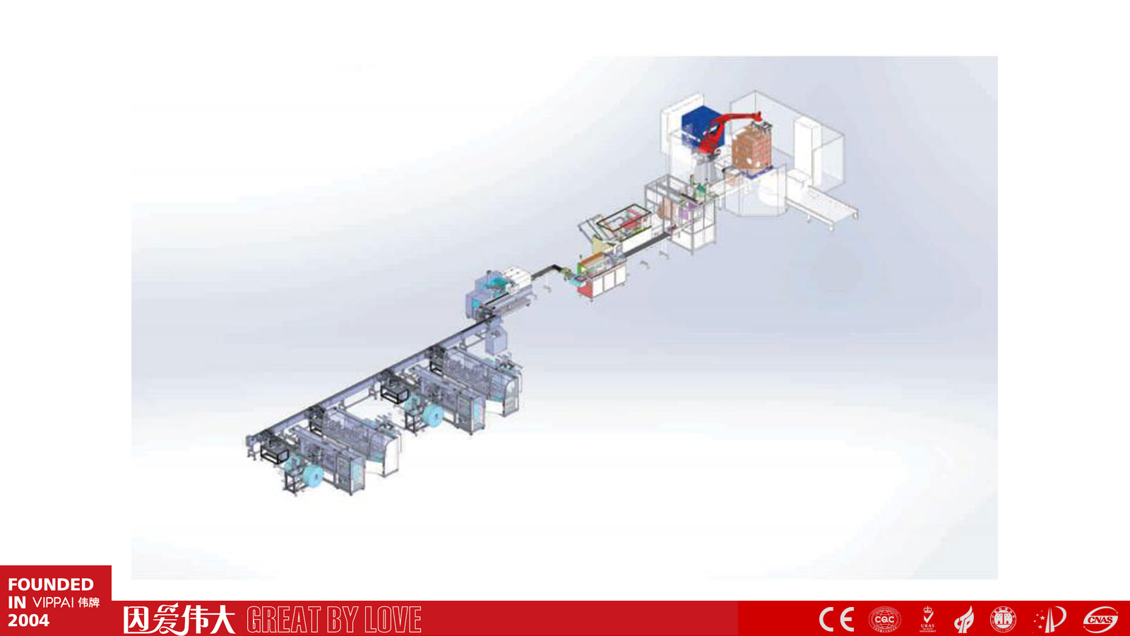2004年开始专注包装生产线设备的研发制造,至今,全球已运行800余条伟牌®湿巾面膜包装生产线。